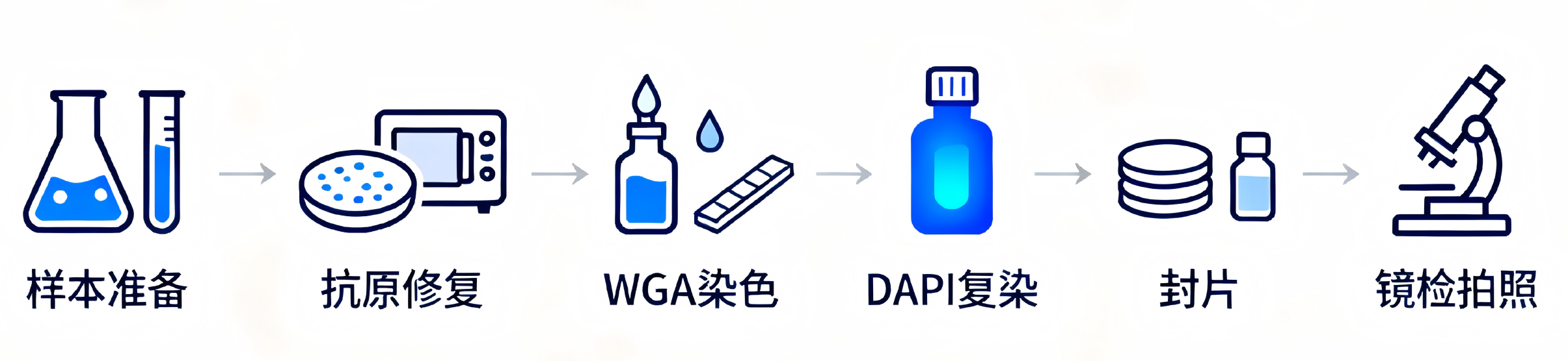 抗原修复:建议使用pH 9.0的EDTA修复液进行热修复,以暴露最佳的WGA结合位点。