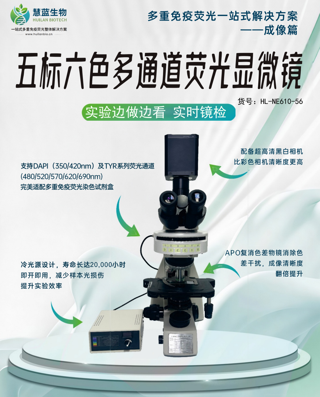 在生命科学研究中,多重免疫荧光技术正朝着更多标记、更高精度的方向发展。然而,传统的双标或三标显微镜在应对五标乃至六色的复杂实验时,往往力不从心。上海慧蓝生物推出的五标六色多通道荧光显微镜,正是基于对科研痛点的深刻洞察,通过多项核心技术突破,为多重荧光成像树立了新标杆。