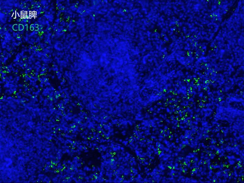 CD163 is a monocyte/macrophage specific marker expressed predominantly on cells which possess strong anti-inflammatory potential. The expression of CD163 is strongly induced by anti-inflammatory mediators such as glucocorticoids and interleukin-10, while being inhibited by pro-inflammatory mediators such as interferon-gamma. CD163-expressing mononuclear phagocytes, as well as soluble CD163, may both take part in downregulating an inflammatory response.
