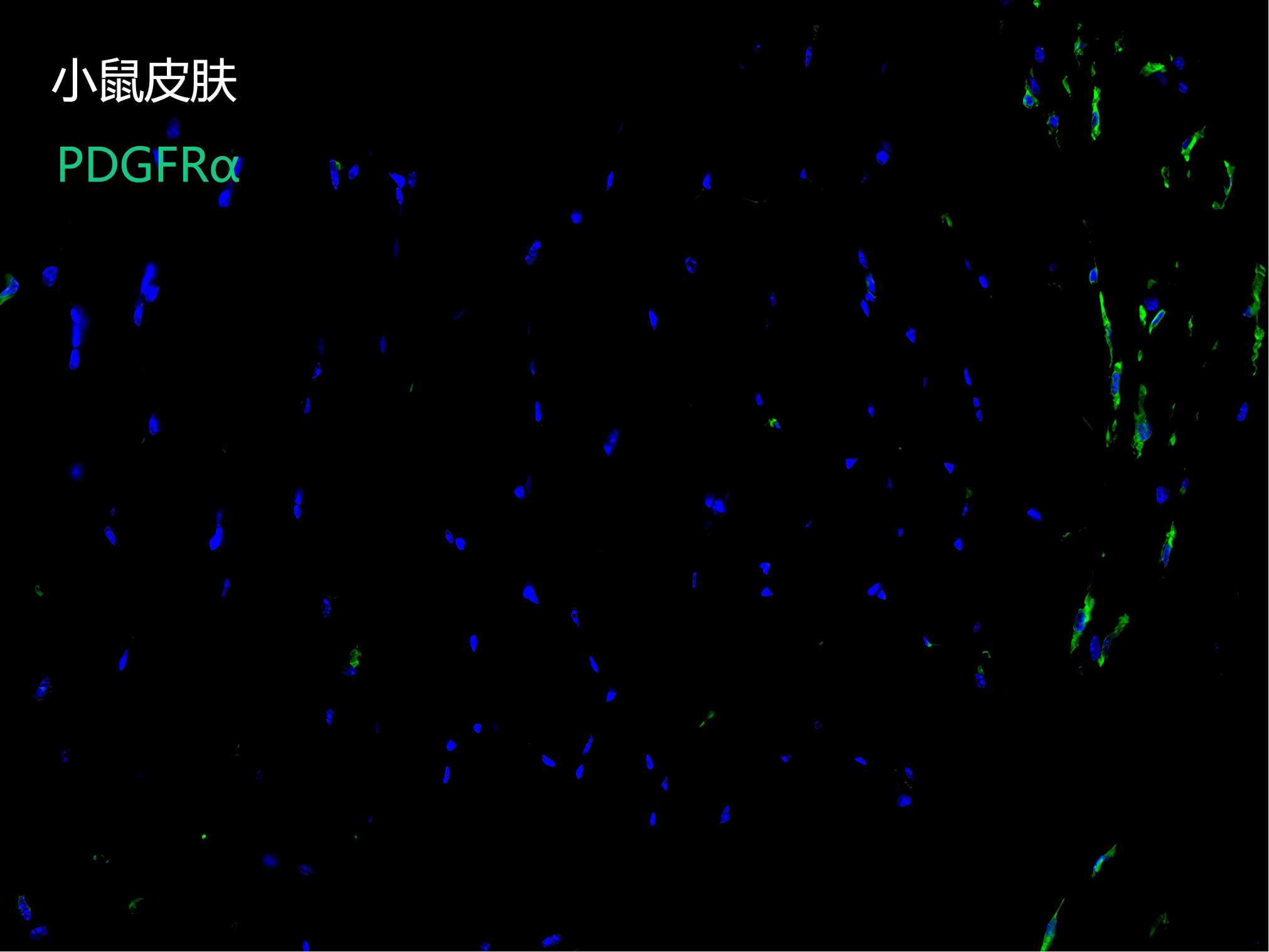 PDGFR alpha, CD140a (also called platelet-derived growth factor receptor-alpha, PDGFR-α) is a 170-kDa glycosylated cell-surface receptor tyrosine kinase encoded by the PDGFRA gene, featuring an extracellular ligand-binding region with five immunoglobulin-like domains, a single transmembrane segment and an intracellular split tyrosine-kinase domain; upon binding PDGF-AA, -AB or -BB it forms homo- or heterodimers, triggers downstream signalling cascades that drive proliferation, migration and differentiation of mesenchymal and glial cells, and is indispensable for embryogenesis of kidney, testis and other organs, wound healing and maintenance of hematologic tissues, while PDGFRA mutations or amplifications are linked to clonal hypereosinophilic neoplasms, gastrointestinal stromal tumours, gliomas and hepatocellular carcinoma, making CD140a a potential therapeutic target in these cancers .